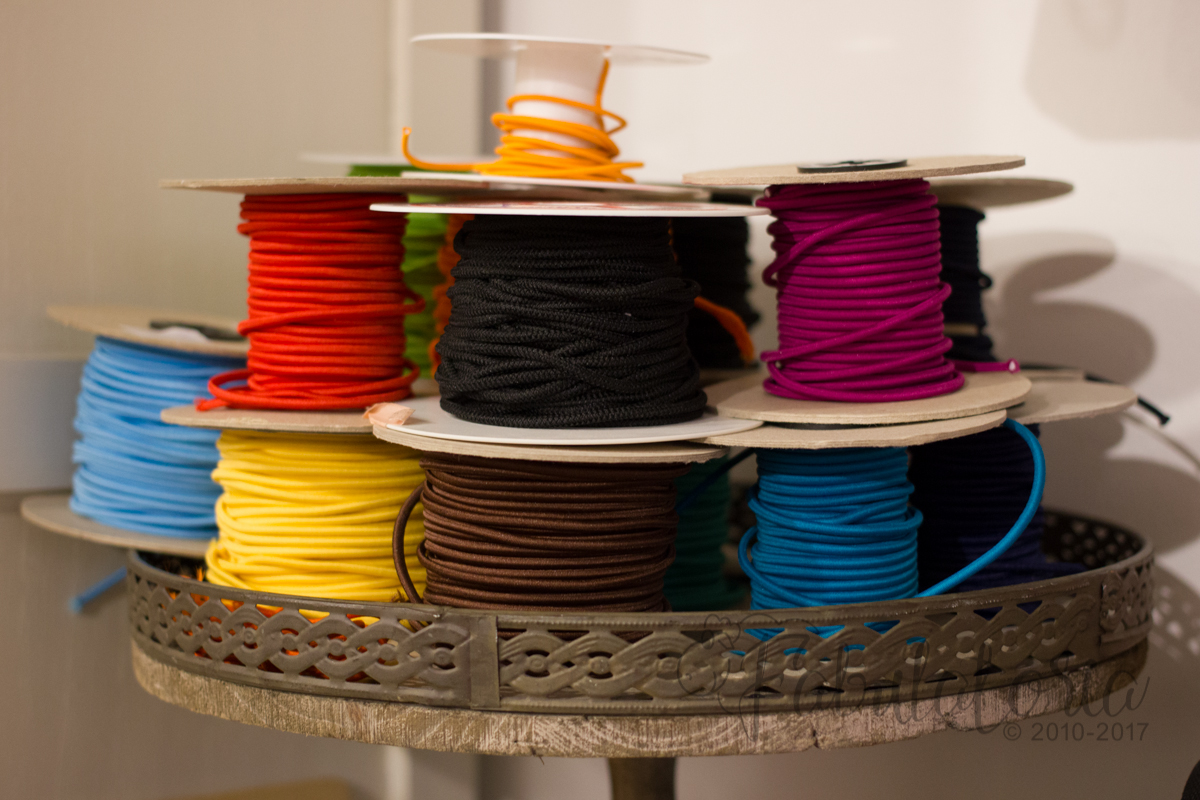 Als ich im September wieder komme, verzaubert mich das Ladengeschäft gleicher Maßen. Schon Draußen wird man von den liebevollen Details begrüßt. Ausgesuchte Stoffe locken die Passanten an, Röcke wehen als Beispiel im Wind, daneben ein alter, rostiger Vogelkäfig mit einer Plüscheule darin. Ich gehe hinein und meine Entdeckungsreise geht direkt weiter. Genähte Kleidung und Taschen sagen mehr als die bloßen Schnittmusterbögen. In einem Korb stehen Wachstücher bereit. Eine alte Vitrine beherbergt Nähgarn in allen möglichen Farben. Und natürlich sind dort Stoffe. Jersey und Webware im Eingang bei den Wachstüchern. Weiter hinten entdecke ich Canvas, Patchworkstoffe und Flanell.